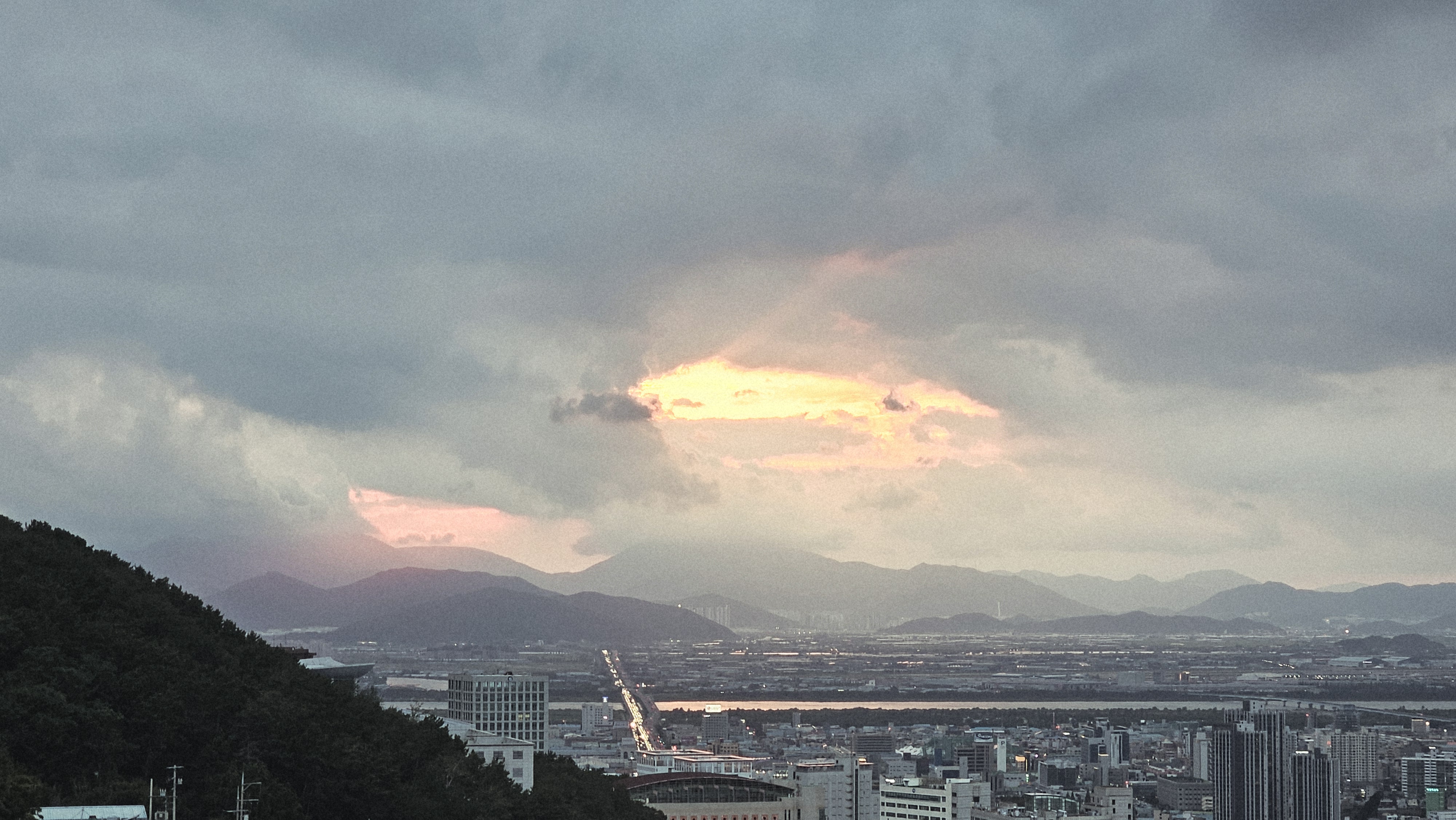 하늘에 빛이 내리는 광경이 너무 멋있어서 하나 찍어 보았다.