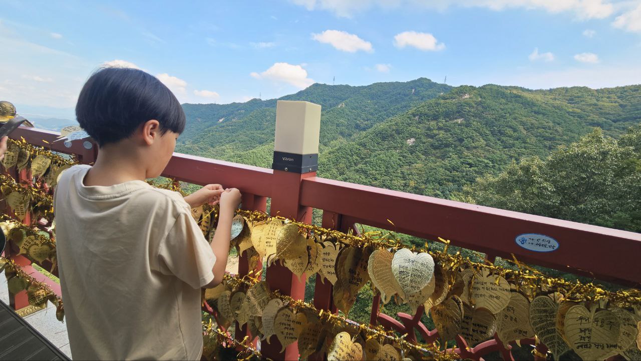 구경도 잘 하고, 커피도 한잔 맛있게 먹고 다음 행선지로 이동 했다. 불굴사라는 곳에 갔는데 불국사와 조금 명칭이 헷갈렸다. 계단이 좀 오르막이 있었지만 그럼에도 왔으니 한번 끝까지 올라갔다. 날씨가 많이 덥지는 않아서 힘들지 않게 올라 갔으며 소원을 적어서 걸어두었다.