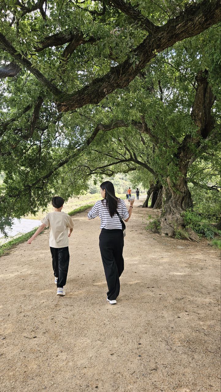 다음으로는 반곡지에 들렀고, 호수 전체를 한 바퀴 돌아보기엔 오르막길이 있어서 좀 힘들것 같아 반바퀴만 돌았는데, 그래도 적당히 산책도 되고 좋았다. 날씨가 좋아서 행복감이 우리 가족에게 묻어나는 풍경이었다.